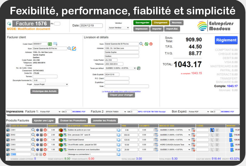 WEBMINO Vente au détail Ce système vous offre un éventail complet de fonctions pour la vente et le suivi, parmi lesquelles les soumissions, les commandes, et la facturation complète, la facturation d'épicerie, le point de vente et le point de vente compact pour les tablettes. |